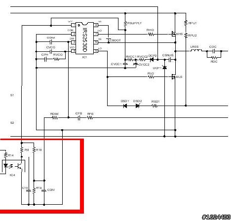各位先進好,小弟現在正在做學校的專題.我是做調螢光燈亮度的安定器,前級PFC已經完成,剩下換流器及調光部分.我是利用調整頻率方式來達到調光效果,這個原理我大概了解.我使用IC是IR2530這顆IC.那我在看一些資料時,有看到電路中有其中一部份為光偶合器的電路,似乎就是調光電路的重點核心,我試著分析出它的動作原理,但最後卻都不得其解.所以希望前輩能願意出手教我或拿些資料給我參考,也可以有想與我討論的同學.最後,感謝各位前輩願意出手相救.電路中紅色圈圈的部分,大概就是我不太了解的地方.