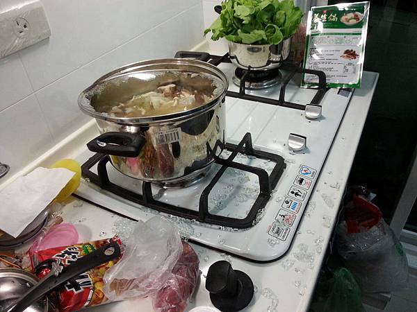 我當下整個傻眼 所有的火鍋料都下鍋就這樣報銷了........QQ