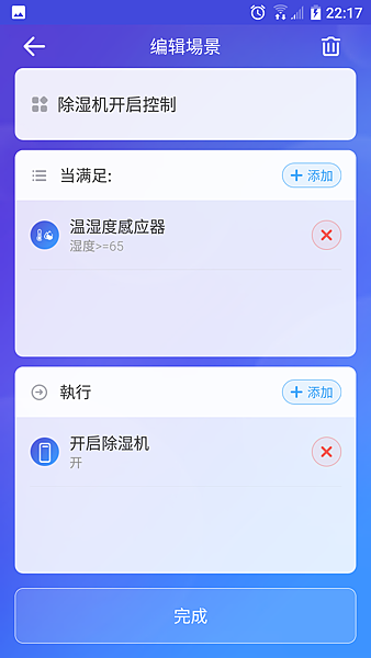 這樣可以實現條件連動功能,當濕度或溫度到達時,自動開啟電器.