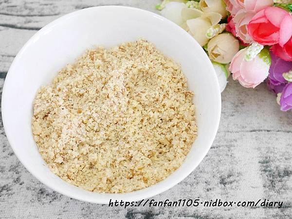 把堅果放入杯中,加蓋後放上果汁機研磨,不一會兒,真的都變成小顆粒狀的耶,如果想要自己磨花生粉也是很ok的