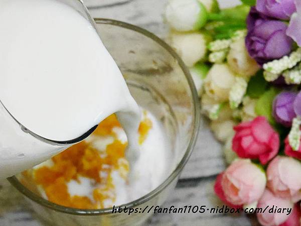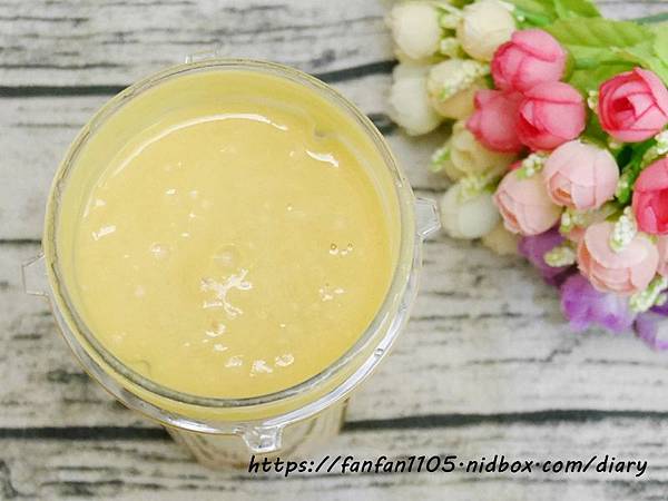 打好的地瓜泥打好後可以倒入鮮奶調合飲用