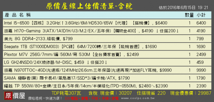 CPU i5-6500 ? 聽說比較推主機板 主要保固久 用料好點就好GPU 970系列 技嘉優SSD 250G硬碟1T 主要保固久POWER 海盜船?記憶體 金士頓 16G需要機殼麻煩推薦 對流散熱夠好外型美觀的