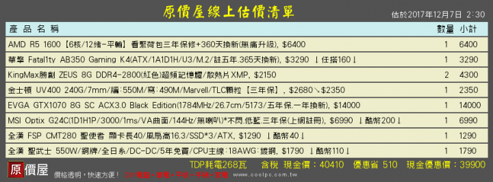 還是有其他cp值比較高的組法,預算盡量在40K 之內