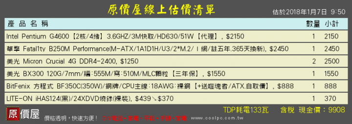 axl12346789 wrote:各位大大好大致需求...(恕刪) 10k 不含 os, g4600, 8g, 內顯SSD 改 BX300, 板子拿 4 dimm 三輸出五年保的不在意保固可以降 pro4 稍微便宜些a8-9600, 8g, 內顯板子拿 4 dimm b350, 有必要可以自己手動超頻