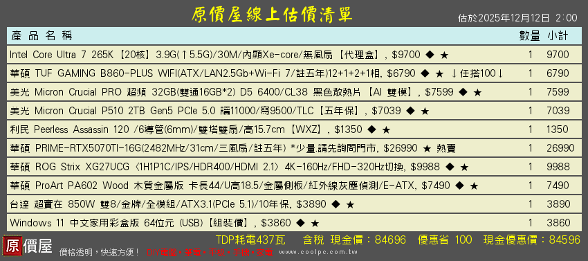 有沒有考慮INTEL 265K? 還送水冷不用另外買