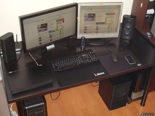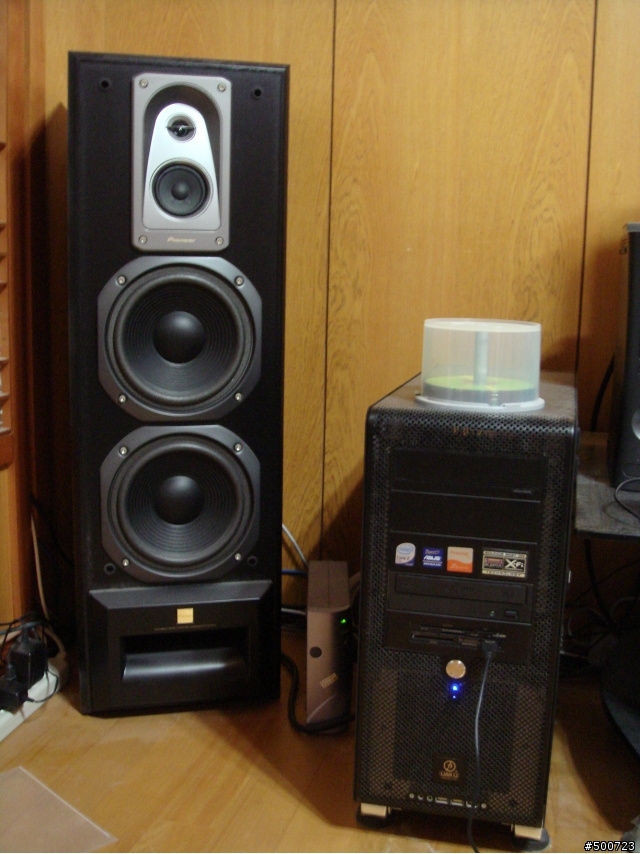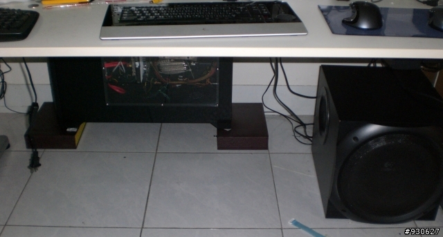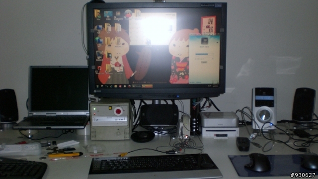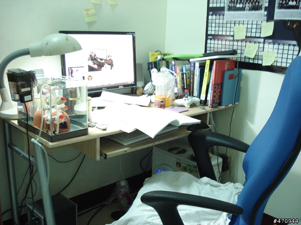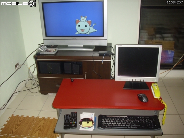 前幾天PO了女王的專用機,這次PO上小弟的電腦使用環境囉~首先來一張整體照動物文書上網機:SAMSUNG 19吋寬螢幕羅技 V10 USB喇叭羅技 快看瞭望台 AF 網路攝影機羅技 無影手 MX 5500 Revolution 鍵盤滑鼠組HP C5380 事務機PCI MZK-W04NU 高速無線寬頻分享器日立檯燈一盞娛樂機~看電視打電動聽音樂播藍光都用這個系統~SAMPO 37吋 FULL HD 液晶電視ONKYO TX-SR605 擴大機Pioneer 5.1聲道喇叭PS3單純墊高用的老古董DVD播放器XBOX360WIIPC:聯力 PC-V1000 PLUS 機殼(內部零組件省略)羅技MX 3200 無線鍵盤滑鼠組 (躺在床上用真方便)台達 UPS躺在床上看電視打電動聽音樂播藍光還是最舒服的(警告:長久下來會變胖)入門藍光擴大機 ONKYO TX-SR605 整合電腦電玩電視電影就靠這台了落地式木質喇叭 PIONEER的,雖然是十年多前的東西,撮合著用囉~機殼跟喇叭中間藏了一個台達的UPS~