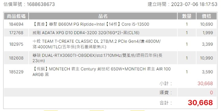 如果爬有問題那就選AMD推7600X搭個4060ti省電又有DLSS支持,電供選ATX3.0架構,配單給你參考看看