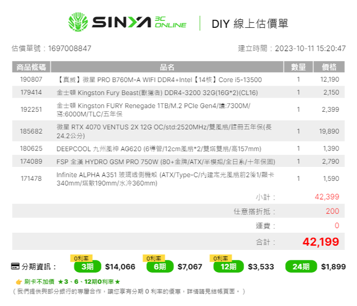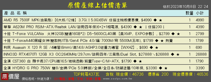 菜單給你參考 雖然45K感覺怎樣都會超過你的需求就是了