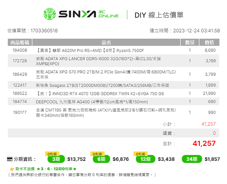 預算40K上下,原先 AMD4990狂專案沒了,現在改選AMD7900X3D專案,請各位再給建義