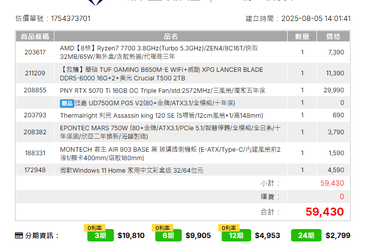 7700+5070ti 主機板不用選到背插可以省一點,機殼可以選903,cp值很好又不貴,這樣顯卡可以再升一階,給你參考。