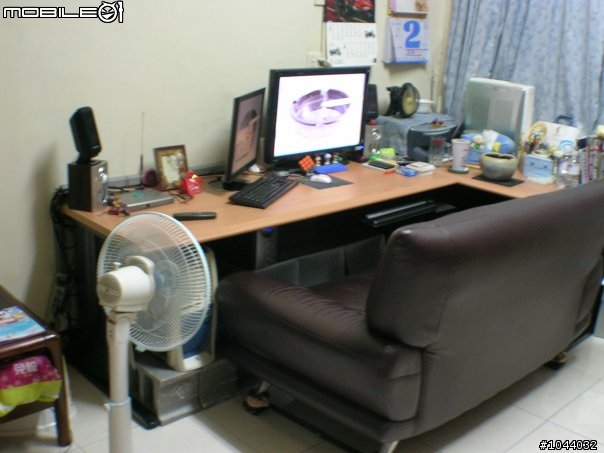 分享一下~~先從屏東老家時開始!再來是來台北工作後的擺設附一張把線材整到鐵架下面~塑膠扣是在金華買的~1個1塊~螢幕都是ASUS VW266H只有喇叭在南部是JS的90XX(型號忘了,姨丈公司的商品-免費)北部是帶ALTEC LANSING 2.1小喇叭~鍵盤在南部時電腦桌一組,床上一組~北部租房子比較小,幾乎躺在床上用~