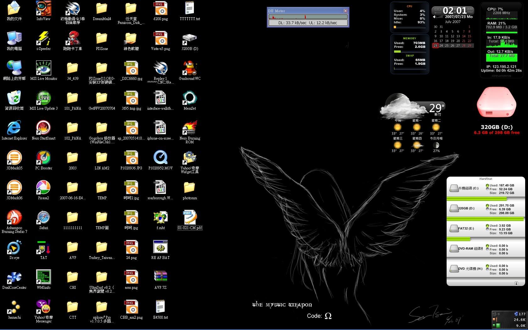 這是我昨天才剛換上的偉大的博派柯博文兄但桌布本身找不到寬螢幕版 好像被壓過了= =--這是剛剛換好的由於不太會用其他軟體所以全部由widget包辦~XDD後來把物件跟桌布背景融合在一起 用起來很有感覺 很棒 (但很吃資源)
