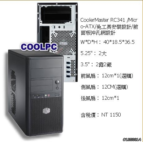 CASE 機殼(+電源) CoolerMaster RC341 /Micro-ATX/免工具安裝設計/前面板沖孔網設計, $1150 ★ 1 1150