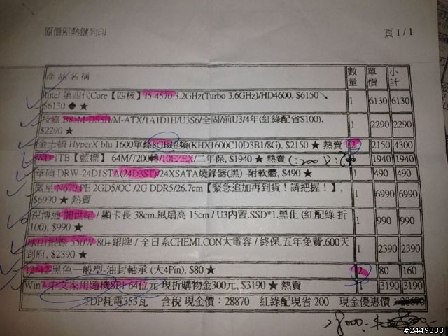 由於小弟正在工作,平時打game、玩bt看影片,時間上難以去電腦商場一一比價,所以用最簡單的方式向普遍被認為公道的原價屋下訂單。