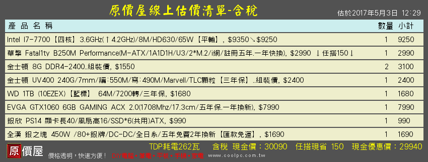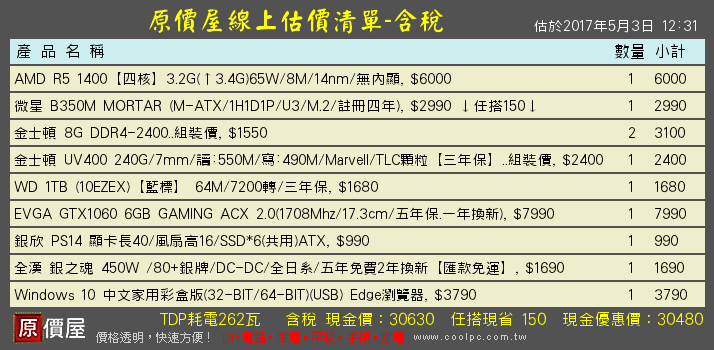 https://goo.gl/YzDDlr用欣亞的高興價來壓電源價格不含硬碟,可以沿用舊筆電的硬碟SSD改成1XXG的SSD話 可以壓到3萬左右或是用樓上的那張顯卡也能壓在3萬左右---------------沒特殊需求建議組ryzenhttps://goo.gl/N4MrmI