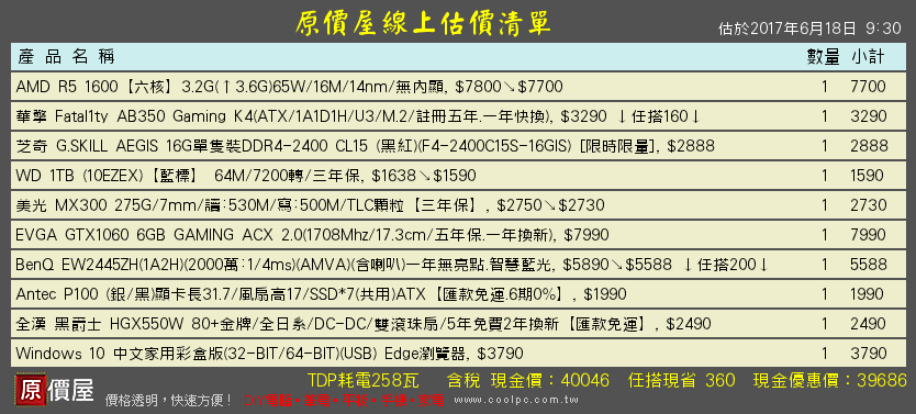 板卡都拿五年保固的, SSD 換 MX300, 1060 要就選 6g 版本
