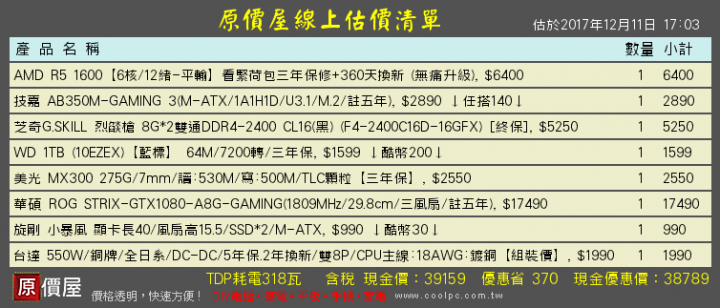 cfvcfv666 wrote:ram不行 沒hdd...(恕刪) 我也想問?回版主,記憶體拿超頻版比較好硬碟 256ssd + 1t HDD是比較綜合的選擇預算有40K,可以上asus GTX1080 五年保了