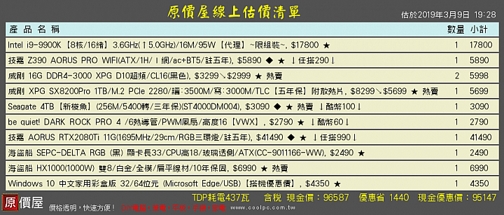 最近想了很多各式各樣的組合 最後得結論就是這樣 有點貴這樣的菜單會不會有分配不均的問題 比較怕散熱...CUP散熱是爬各文章出來的結論一體是水冷我就放棄了 太多的漏水之類的問題顯卡選這張是因為 看他評測上溫度蠻涼的....麻煩各位大神了
