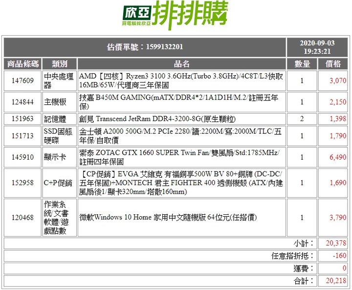 jj495654 wrote:請教各位大神,想自己(恕刪) 多捏一下會菜單會更平衡, 顯示卡也可以上到五年保固的EVGA GTX1660SUPER, 也有正版作業系統, 使用全漢450w的聖武士就可以推動這些零組件了.