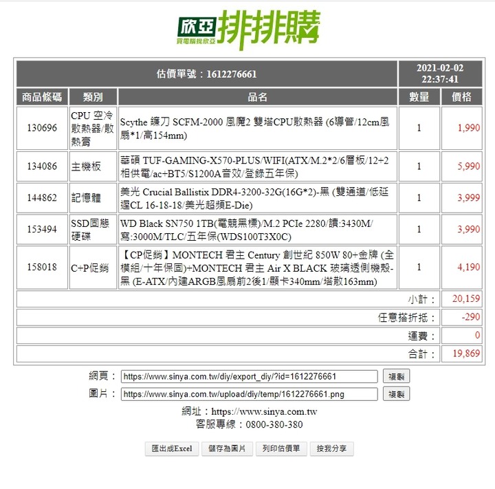 CPU補個好一點的塔散 風魔2 效能會更好主機板用X570的供電和用料都不錯記憶體拿32G 多工 玩遊戲也很足夠硬碟先拿SSD 1TB的 以後也可以擴充POWER拿850W 金牌 十年保機殼網孔散熱好的這樣快20K~ 不含OS~