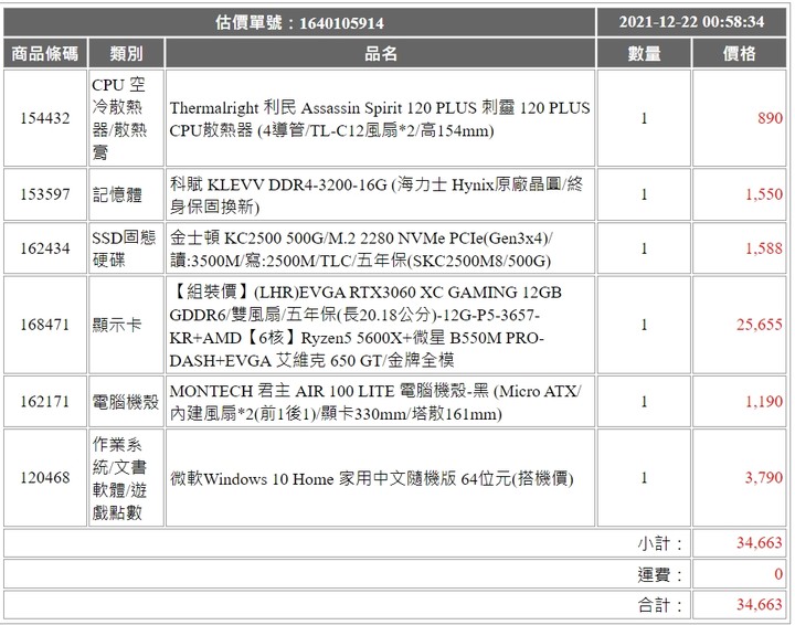 可考慮用5600X+B550M PRO-DASH記憶體配科賦3200 16GSSD配KC2500 500G顯卡用3060 XC GAMINGPSU用650 GT CASE配AIR 100 LITE另外再配上AS120的塔散
