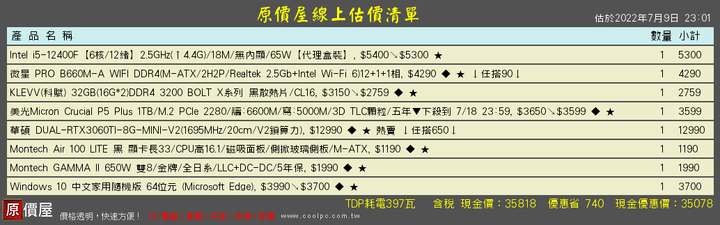 vijkol wrote:第一次組電腦 預算差(恕刪) 30k 不含 os, i5-12400f, 16g, 3060ti先拿 SSD 之後再補硬碟, 卡上 3060ti, 機殼看個人喜好30k 不含 os, i5-12400f, 16g, 3060ti512g nvme SSD + 2t 硬碟, 需要硬碟的話改這樣35k 不含 os, i5-12400f, 16g, 3070ti預算燒完的話, SSD 上 gen4, 卡上 3070ti35k 含 os, i5-12400f, 16g, 3060ti需要 os 的話改這樣
