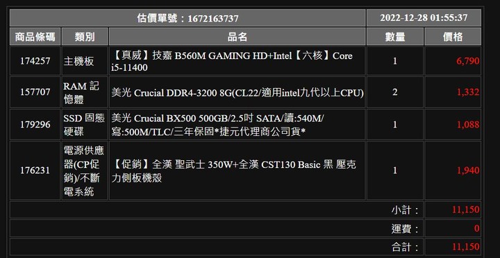 wsjyls wrote:各位前輩好,一萬二的...(恕刪) h610 那個價格都可以買到 4 dimm b660 了...完全沒理由選那張...ram 那個價格也是可以買到 CL16 16g kit 了, 沒必要買比較差的原生條SSD 不要買 QLC 的12k 不含 os, i3-12100, 16g, 內顯SSD 上 sx8200pro, 機殼拿 650w 組合你之後有想加卡的話比較方便12k 不含 os, i3-12100, 16g, 內顯覺得拿 350w 就好的話改這樣, 板子上 b66012k 不含 os, r5 5600g, 16g, 內顯12k 不含 os, r5 5600g, 16g, 內顯不排斥 amd 的話你拿 apu 稍微好一點