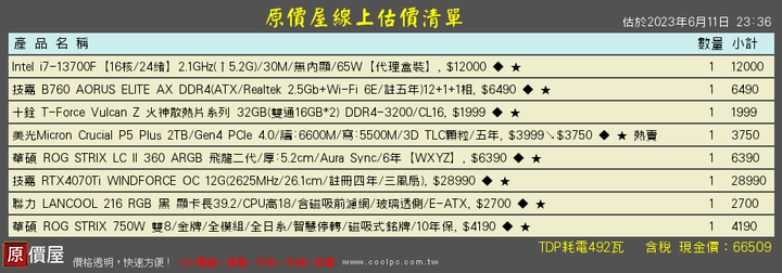 CPU (中央處理器):Intel i5-13600K $10100