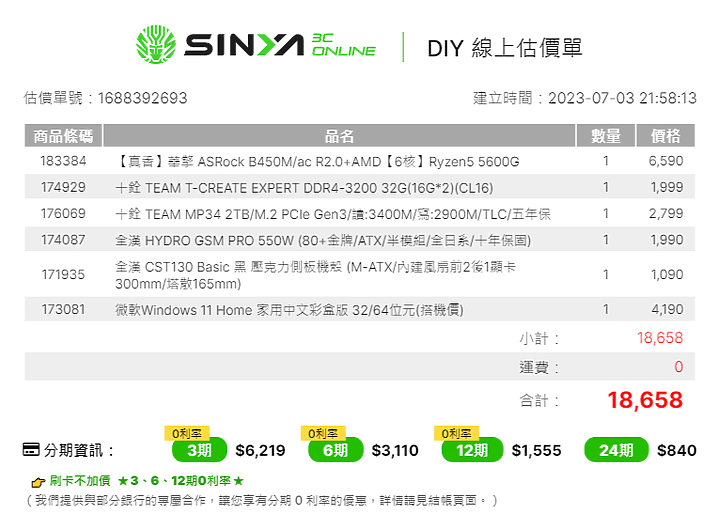 機殼電源可以拿組合價送塔扇