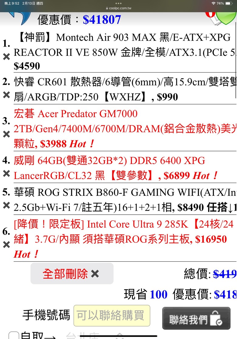 2. 目前粗略菜單 (顯卡暫拿4070 ti s估價) 想請大神們幫忙健檢><