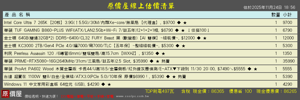 lkjhg1011 wrote:有建議更改? B850拿用料更好的原六層板60A 160MHz wifi7換八層板80A供電滿血320MHz wifi79800X3D +5080 +CL30低延遲64G +C930-2T +強大散熱聯力217 INF菜單給你參考!