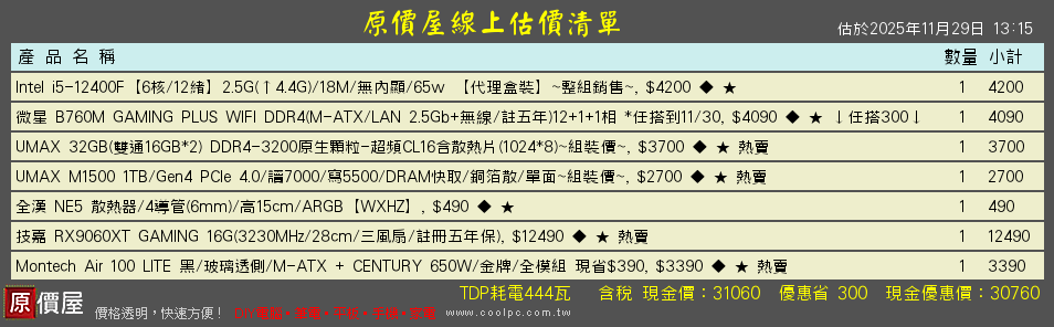 想了解 三萬元左右組桌機的合理配備(CPU / GPU / RAM / 主機板 / 電源等建議)。