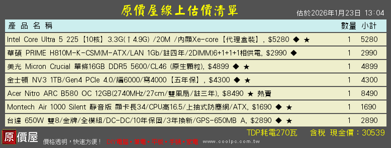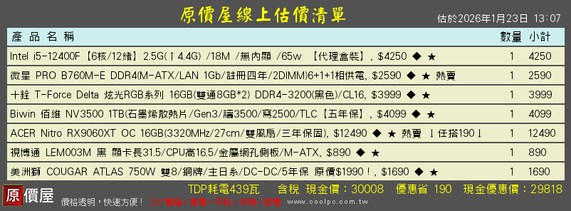 也可以組12400F +B580 + CL16記憶體32G +B760 +NV3500的29K組合菜單給你參考!