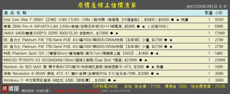 至於顯示卡, 5070 12G的價格, 倒不如4070 SUPER 12G, 效能兩者一致, 後者價格可以再低$4000~6000左右