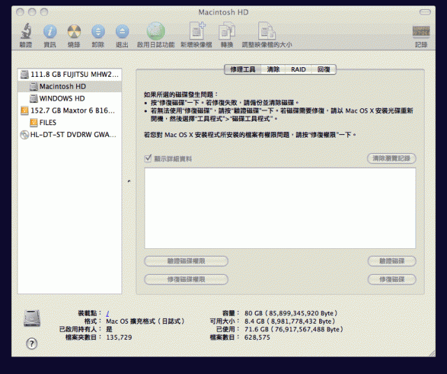 是的,我知道您說的部份硬碟商說的120GB,在作業系統上不會真的到120GB而我詢問的部份是針對系統而言,如下圖:這是 command + i 看到的硬碟資訊這是磁碟工具程式提供的資訊我想只是有些資料被隱藏,而我不知道他們在何處前陣子實際使用+剩餘空間還不足70GB過,不知何解?