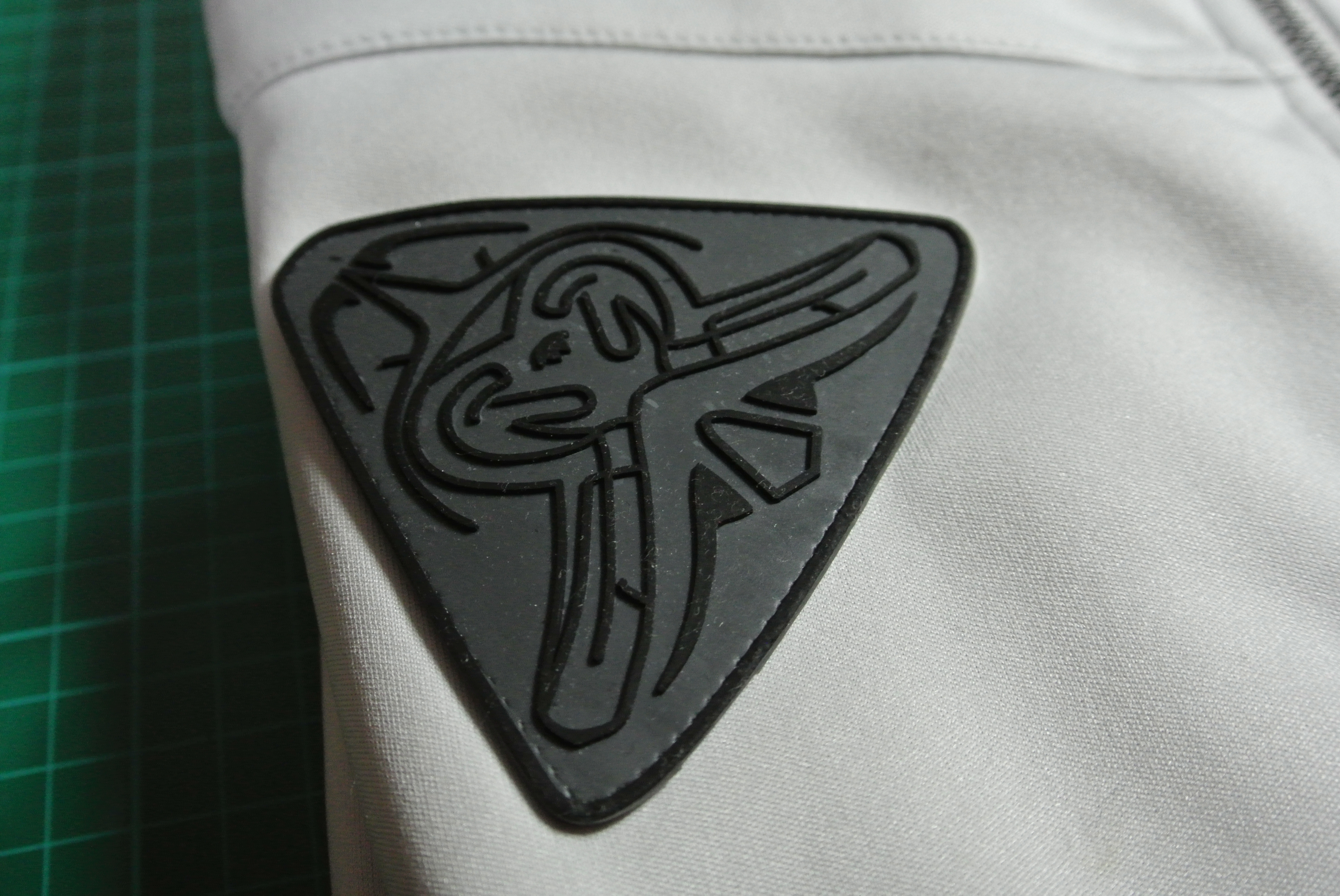 背面一定有教團團徽,左右邊相襯的圖騰紋,以及袖劍護甲(圖案)
