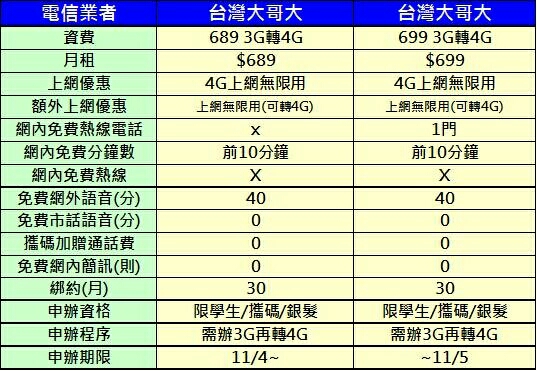 ◆401H(30)+行動上網 499(30):限選用 401 型(含)以上語音資費,可享: