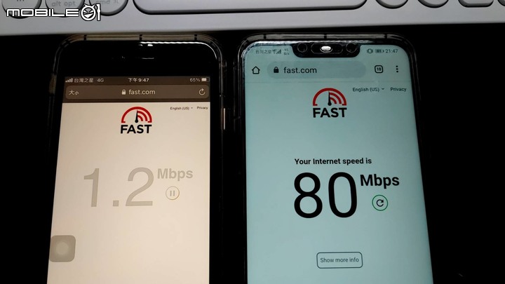 等等你Fast.com跑看看台灣之星 Speedtest 不會限制速度但是Fast.com被限制速度一定會發現我曾經台灣之星 下載檔案600GB後鎖1Mbps 每天的第1GB 不限制速度但是超過後就100Kbps在跑Speedtest看不出來差異你也不用期望下個月會恢復我被鎖了後 多用了14個月台灣之星還是一樣 沒有恢復 後來我就跑到遠傳了(被鎖前半年我就沒合約了 想走隨時能走)被鎖住 就像是左邊那樣 右邊沒被鎖