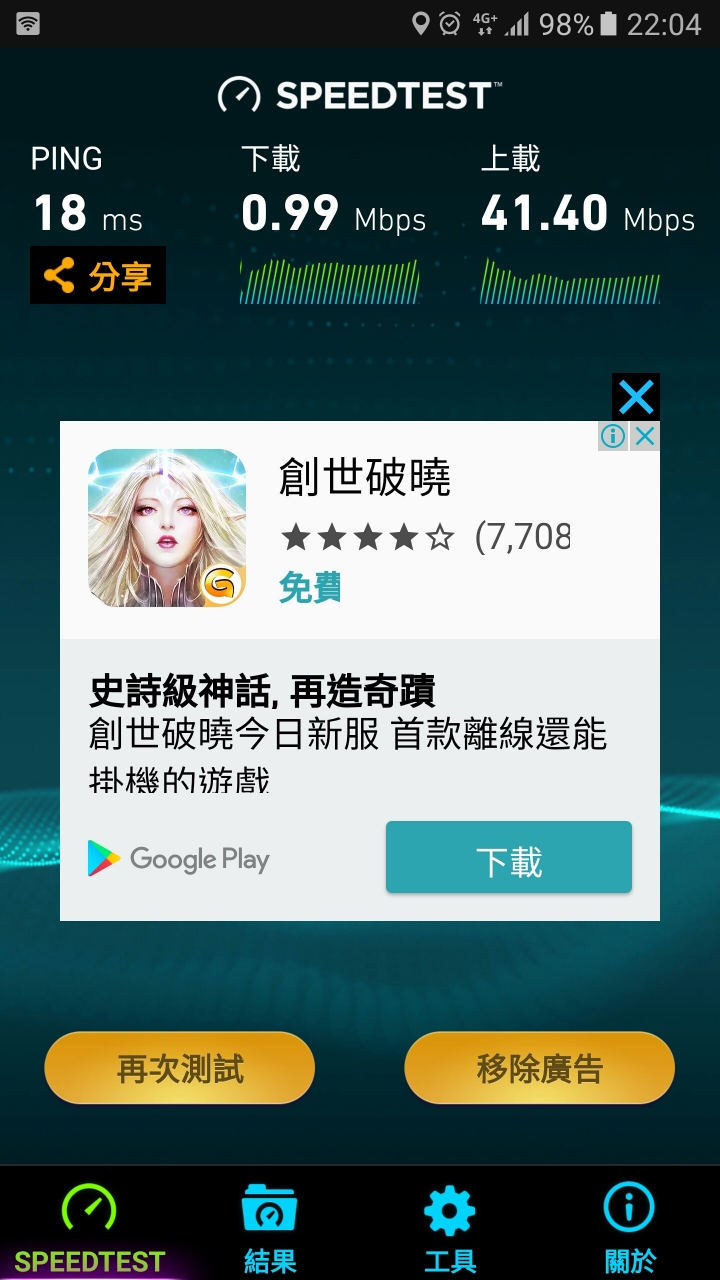 list wrote:原來連蛋大都中標啊可您的速度都還比我好多了下面附上我的網速這簡直是完全不能用的速度不管在家裡在公司在白天在晚上都是這種連3g都不如的速度我是高用量沒錯但這種限速方式擺明不給人活用戶們,申訴吧,我已經申訴了 中華9月推出699 4G吃到飽 (3轉4),我直接透過NP來表達我對Gt4G的網速的不滿,違約金我也甘願付,以後不用再煩惱Gt4G在我家的網速了