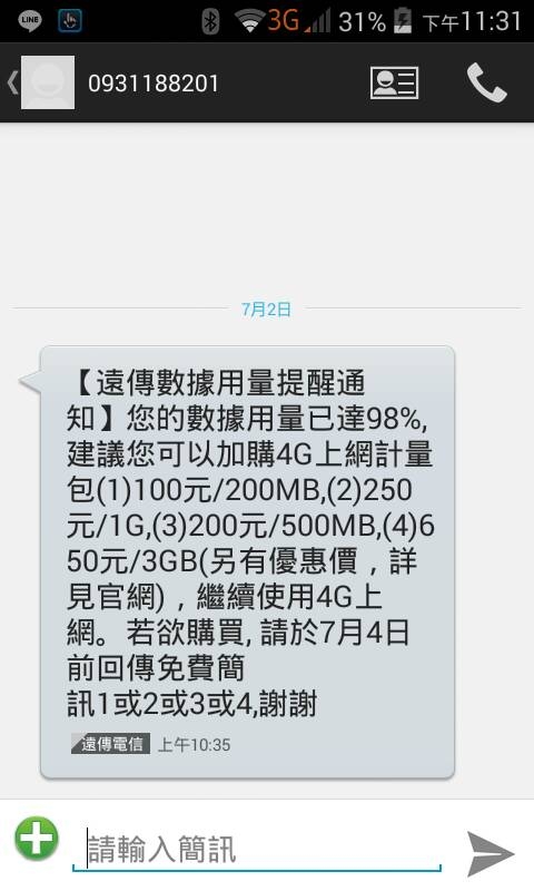 joseti939 wrote:好一個常識判斷厲害...(恕刪) 這真的是行動網站玩家的常識,我就看他們還要出類拔萃?128kbps的會收費是額度內跑到2G去了^_^|||4G門號好像沒有降速後收費,包含降1M的,而限速21這種概念是不一樣的。至於簡訊提醒,我稍後Po上來。遠傳降和台灣大的斷網(3G)都是由客戶主動加購亞太的降速沒確定是否有簡訊,但也可加購(比較不便)遞延。
