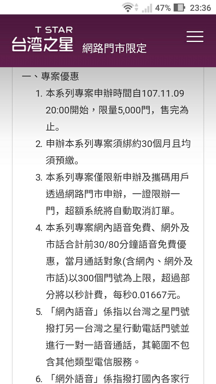 q13579.nomo wrote:這次好像沒特別提到...(恕刪) 簽30個月根本就為什麼台灣之星188沒終身只簽30個月....而且88跟188都要簽30個月被綁死...這次只有88勉強可以~台灣之星果然黑心~