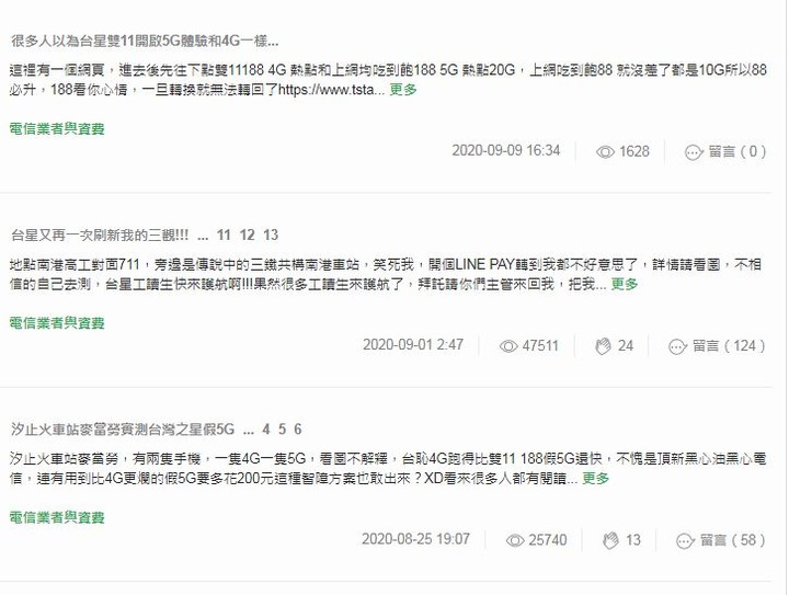 有個表弟辦中華的199送1G流量不到月底就用光流量了我跟他說我辦台星188就可以吃到吐且送100分鐘通話及網內互打不用錢他說台星訊號不好個人使用台星訊號還算可以至少大部分地區用起來沒啥差別我確定他沒有每秒鐘幾十萬上下也沒有跑業務的需求...只是很節省但或許辦中華有一種優越感吧至少門號報出去可以大聲說是中華門號但其他的...沒有了我TS188之前是配小米手機現在換realme還有LM111是配iPhone還有一個TS0三個門號加起來299比別人一個門號還便宜我都自嘲跟同事說我是辦窮人方案搭配小米窮人機我會關注01的資費方案是因為可以省錢可以辦到便宜的終身方案如果很關注資費方案卻辦499以上的資費那麼不如利用空閒時間去想如何賺錢比較重要我TS0是之前留給房客的電話號碼號碼不錯不想退租也很少打就用TS0養門號也不多花錢