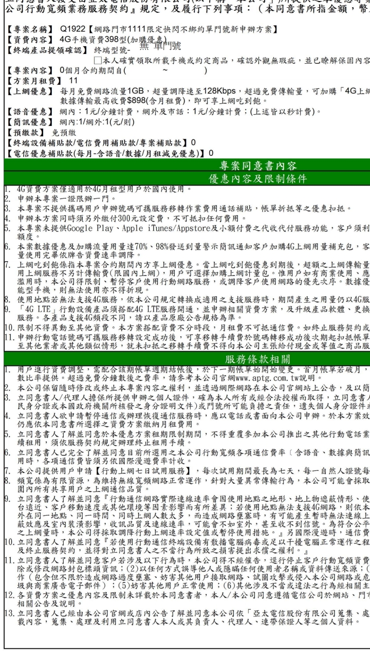 昨天在站上看到訊息,隨意的申請了3個,結果昨天晚上3個都收到簡訊通知可以辦11方案結果這次是申請3個全中,這是是通通有獎的概念嗎?還是知道訊息去申請的人不多~不像母親節時的11方案,我連搶了3天搶不到,都被秒殺,感覺這次很容易拿到入場券!其實這次我只需要辦11方案一個,怕沒抽到所以想說用3個證號去申請抽抽看,結果3個全拿到申請資格。早上已申辦一門,接下來等超商取貨了!今年1111應該不用再去搶其他方案了...PS:一發完文就有人秒發私訊來索取。已經依來信順序,剩下用不到的兩門號簡訊已送出給他們了,麻煩不用再私訊給我索取了,感謝~