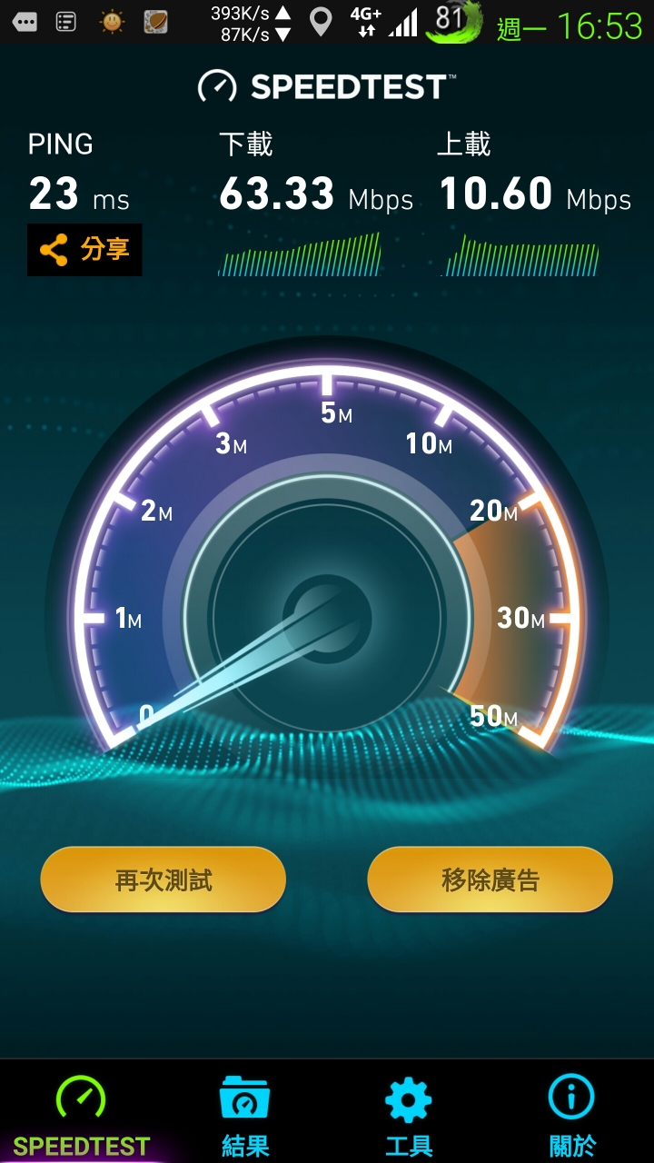 01有惡魔 wrote:竹科裡面上班時間中華...(恕刪) !!! 差好多啊, 當初會辦中華4G也是因為當時沒什麼人用,好快,現在我手機在竹科裡只能開3G,因為3G比 4G快.......合約到我也要換家了.........