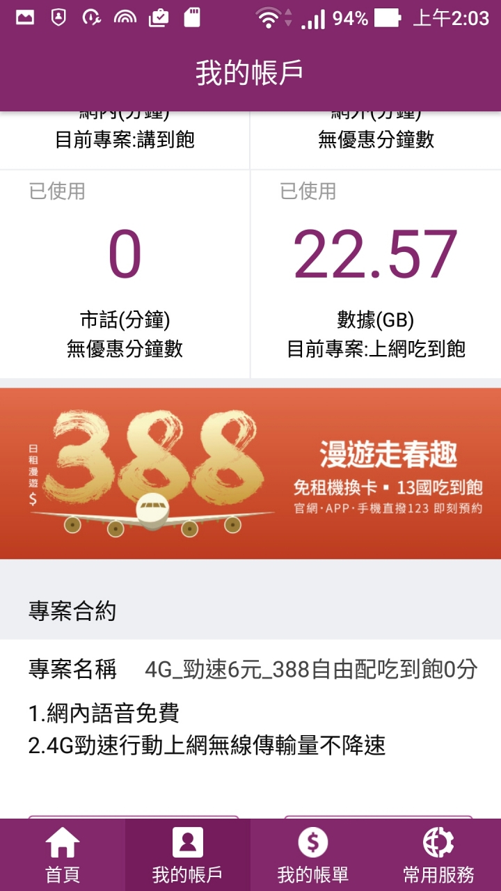 不專業用戶 wrote:辦30天測速的~~...(恕刪) 我開通了自由配388差不多一個星期,使用22GB左右,你的情況,在我這邊還沒有發生。一個星期以來,大約都在40M/20M連網速度。不過,依照你的使用情況,倒是提醒了我後續使用時,也要注意一下是否也遭限速了,到目前我都沒有被降速就是了。