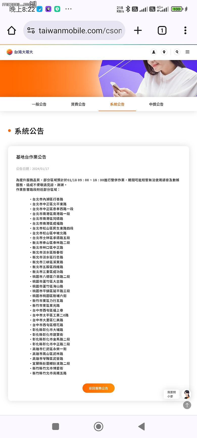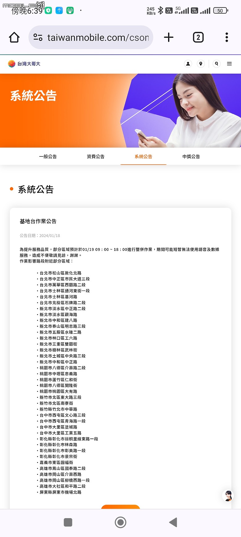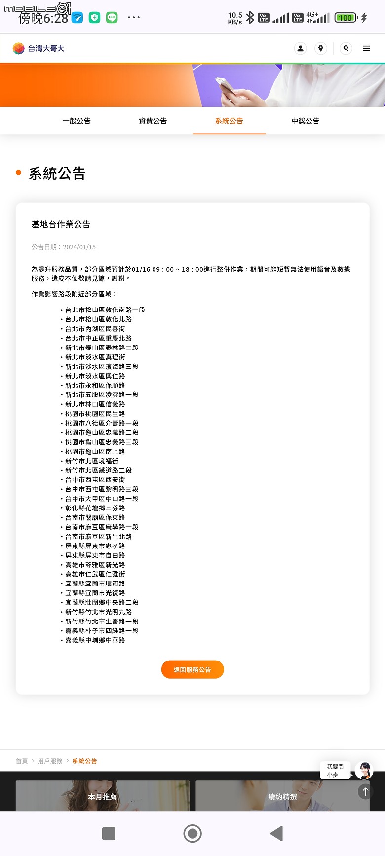 更新 01/16整併地區 #1 (區域街道)https://www.taiwanmobile.com/csonline/service/ann/ann2_20240115_173524.htmlhttps://www.taiwanmobile.com/csonline/service/ann/ann2_20240115_221651.html
