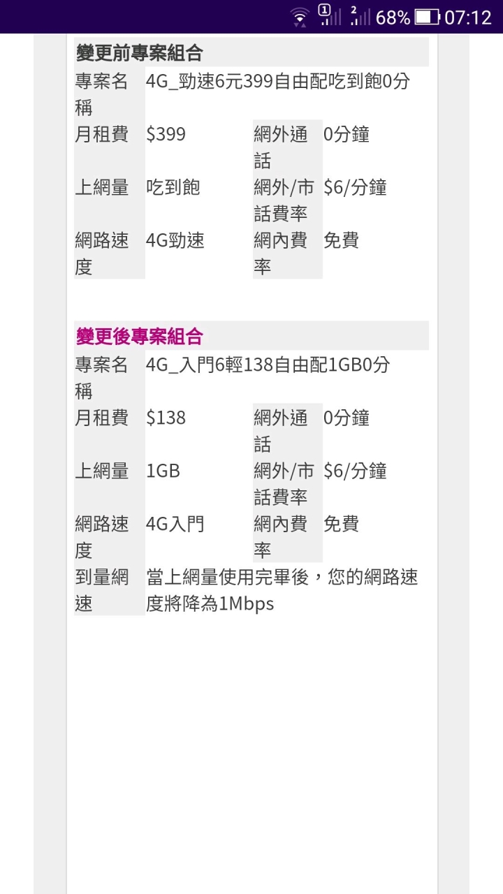 tim14545 wrote:我在怎麼用也不會到1...(恕刪) 上個月中辦了勁速399, 把台灣之星當大流量固網用, 這個月5號 過完計費週期後沒幾天就被限速了。還剩下11個月 的合約要走 還好有 自由配 可以改成 限速1M吃到飽