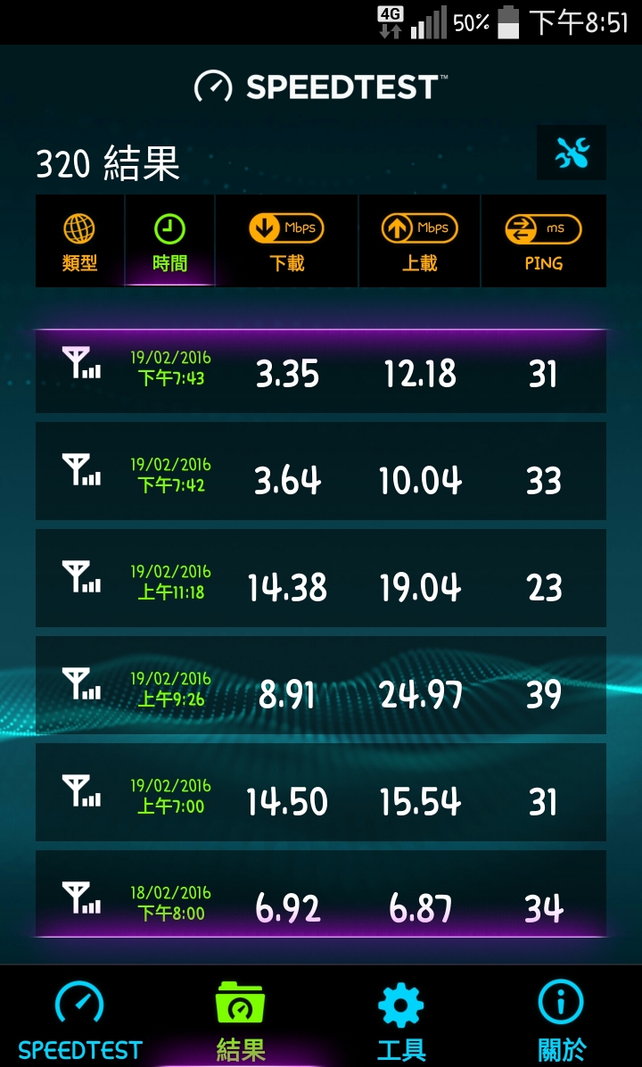 Darkhu123 wrote:我用台哥大最近也都...(恕刪) 行動網路本來不同時間測都會有差啊要看當時使用的人多寡 基地台遠近還有佔的頻寬之類的連2樓在短時間內測這麼多次都會有不同了~我也是用台哥4G 我覺得除了看測速一般使用的時候 網路順就沒問題了啦!