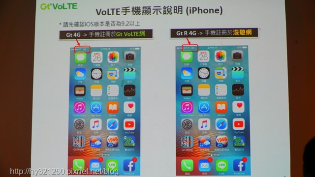 iPhone手機部分,不同型號,在手機螢幕左上角出現的字樣會是GT或GT 4G。如果漫遊到台哥大的4G LTE網路,就會多出現一個"R"以供區別。