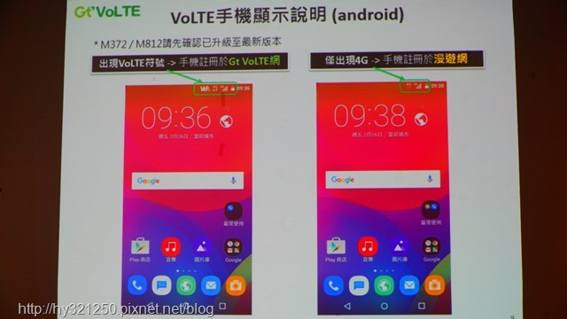 Android手機部分,如果是在自家4G LTE網路下,手機會出現VoLTE字樣,但如果漫遊到台哥大的網路,手機就只會顯示4G字樣,讓用戶可以判別目前手機是使用誰家的網路。